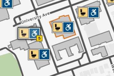 On this map, the Student Union Building (highlighted in orange) is next to University Ave.